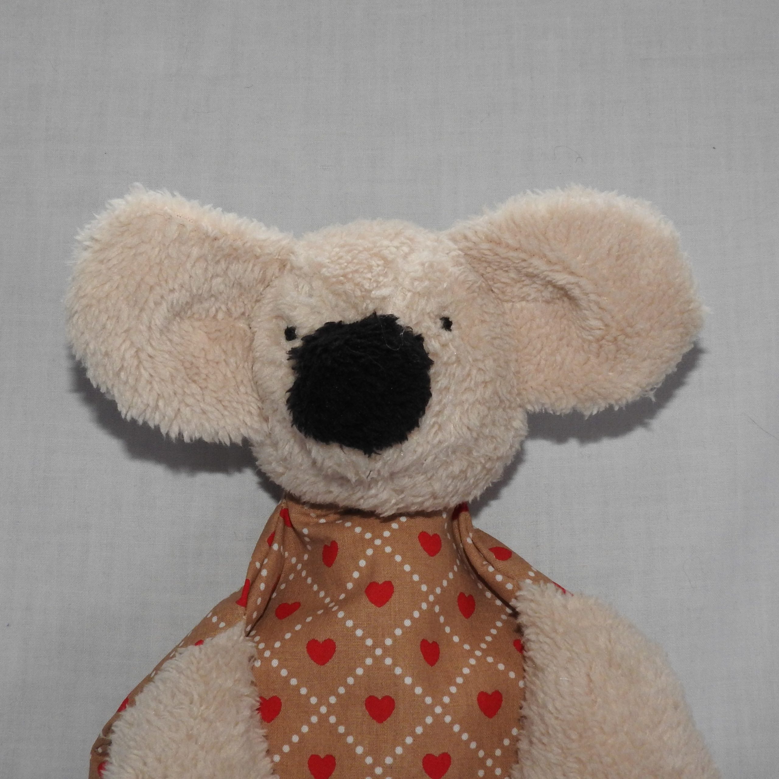 Der Kopf, die Arme und Beine sind aus einem feinen Kunstfell genäht. Der Koala hat eine Bettflasche im Körper. Durch den Reissverschluss am Rücken kann sie heraus genommen werden. Das Material der Bettflasche ist ohne PVC und ohne Weichmacher. Deshalb fühlt sich die Flasche zuerst etwas fest an. Mit dem warmen Wasser wird sie aber weicher. Bitte beigelegte Gebrauchsanweisung beachten.